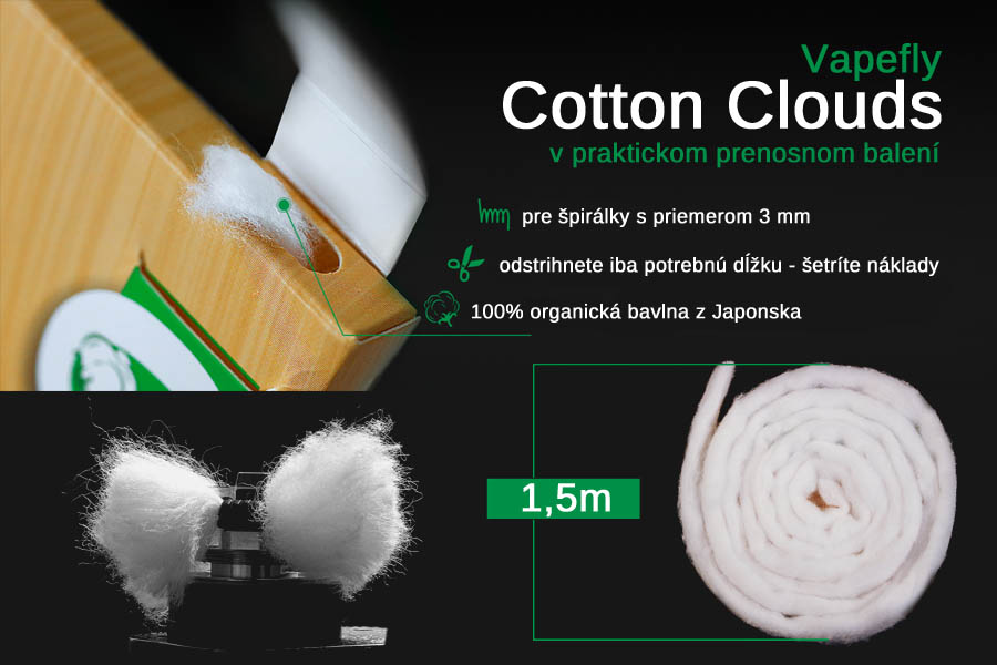 Cotton Clouds organická bavlna od Vapefly z prírodnej a chemicky neošetrenej bavlny vypestovanej v Japonsku.
